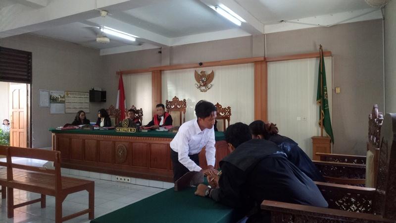 Bali Tribune/ Arief Efendi saat berkonsultasi dengan PH-nya terkait putusan hakim.