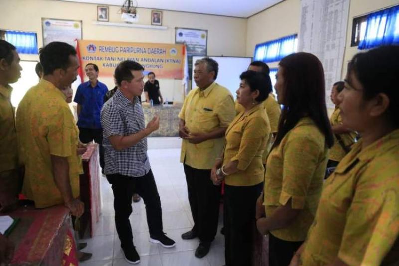 Balitribune.co.id | Semarapura - Bupati Klungkung I Nyoman Suwirta membuka Rembug Paripurna Daerah Kelompok Kontak Tani Nelayan Andalan (KTNA) Kabupaten Klungkung di ruang rapat Balai Penyuluhan Pertanian (BPP) Kecamatan Banjarangkan, Sabtu (1/4/2023). KTNA merupakan suatu organisasi independen di Indonesia yang berorientasi pada aktivitas sosial di sektor agrikultur, yang berbasiskan agribisnis dan lingkungan hidup di pedesaan.
