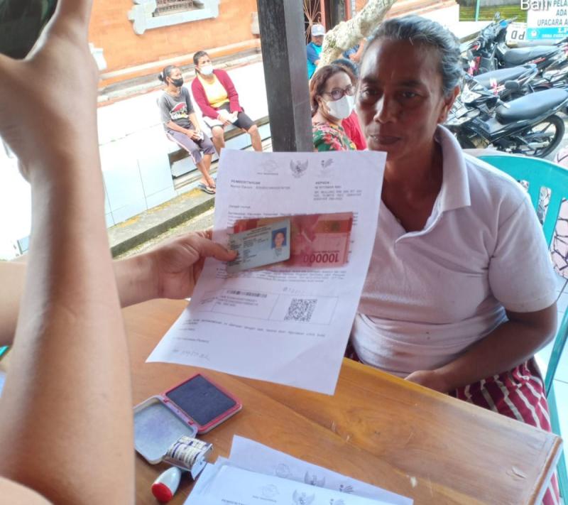 balitribune.co.id | Gianyar - Tidak menunggu lama, setelah pendataan Calon Penerima Bantuan Tunai Pangan (BTP) minyak goreng, mulai Senin (11/4/2022) langsung cair. Di hari perdana, Kantor Pos Gianyar melayani penerima bantuan dari Desa Sumita dan Suwat, Gianyar dengan sistem jemput bola.