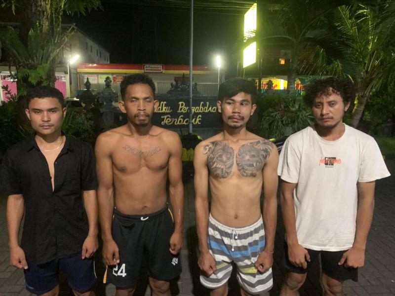 Bali Tribune / DIAMANKAN – Empat pemuda asal Manggarai NTT diamankan polisi karena mengajak warga banjar berkelahi.