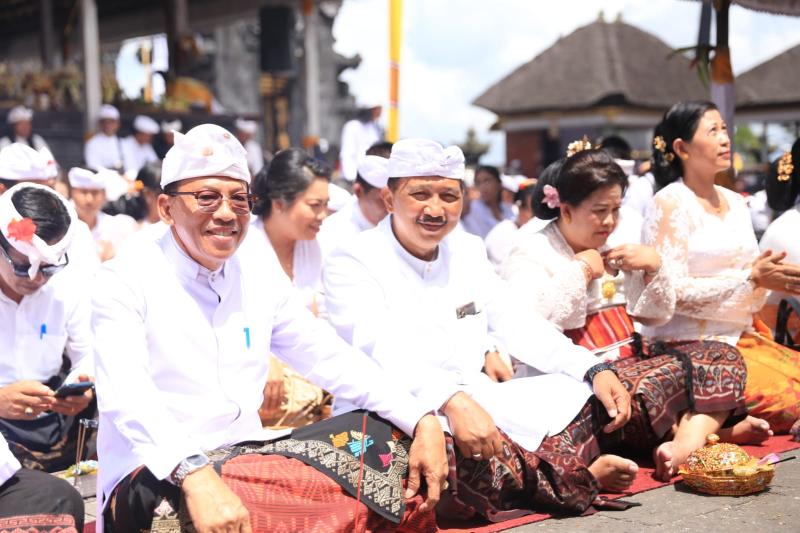 Bakti penganyar Pemkab Klungkung dipuput Ida Pedanda Gde Putra Batuaji Griya Batuaji Desa Akah. Sebelum melaksanakan persembahyangan, diawali dengan malaksanakan Puja Trisandya usai melaksanakan persembahyangan, Pj Bupati Jendrika juga menyerahkan Dana Punia yang diterima panitia karya. Selain itu, Pj Bupati Jendrika juga melaksanakan persembahyangan di Pura Pedharman Ida Bhatara Dalem Sri Aji Kresna Kepakisan.