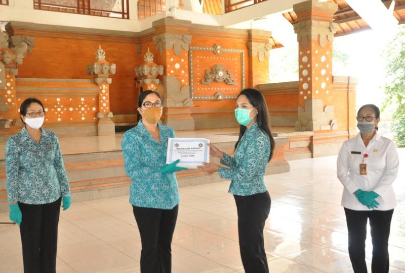 Disamping bantuan beras dari TP PKK Provinsi, pada kesempatan tersebut Ny.. Rai wahyuni Sanjaya juga menyerahkan bantuan 8,98 ton beras dan 10.000 pcs masker kain kepada 359 pengrajin di Kabupaten Tabanan. Masing-masing pengrajin menapatkan bantuan beras sebanyak 25 kg, dan bantuan ini disupport oleh Dewan Kerajinan Nasional Daerah (Dekranasda) Kab. Tabanan.