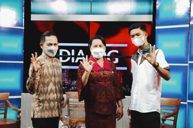 Bali Tribune/ DIALOG - Ketua TP PKK Ny Seniasih Giri Prasta saat hadir sebagai narasumber dalam program acara Dialog dengan tema Keluarga Keren Cegah Stunting di Bali TV, Selasa (29/6).