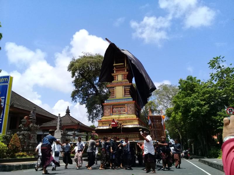 BALI TRIBUNE - Prosesi upacara palebon permaisuri Raja Denpasar IX, Ida Tjokorda Ngurah Jambe Pemecutan, (alm) Dampati Ida Anak Agung Ayu Oka Pemecutan, akan dilaksanakan hari ini. Keluarga besar raja sejak Selasa (13/11) kemarin tampak mempersiapkan seluruh proses dalam pelaksanaan prosesi agung tersebut. Tampak di rumah duka banyak karangan bunga berjejer di sekeliling Puri Agung Denpasar (Satria). Tampak juga bendera kebesaran Puri pun dikibarkan setengah tiang di jaba sisi puri, pertanda jajaran keluarga besar puri sedang berduka. Penglingsir Puri Denpasar yang juga putra pertama almarhum, Dr. A.A.Ngurah Agung Wira Bima Wikrama,ST.,M.Si., mengungkapkan keluarga Puri saat ini sedang mempersiapkan upacara palebon yang puncak acaranya akan dilaksanakan pada Rabu (14/11) hari ini. Terkait upacara tersebut, segala perlengkapan sudah selesai dikerjakan. Termasuk bade yang akan digunakan untuk acara puncak pun telah rampung. "Pengerjaan semua perlengkapan upacara palebon hampir rampung semua. Termasuk pengerjaan bade," ujarnya. Dikatakan, pada upacara ini akan menggunakan Bade yang dilengkapi dengan 9 tumpang (atap). Bila diukur secara keseluruhan, tingginya mencapai 18 meter. "Bade ini ditempatkan di depan Jaya Sabha. Layon akan naik ke bade di lokasi itu. Bukan di depan puri. Karena lokasi puri sebelumnya, berada di areal Jaya Sabha," ujarnya. Terkait dengan upacara palebonnya, kata Wira Bima, akan mengambil tingkat upacara utamaning utama, yakni munggah patrang panca datu. Menggunakan sarana bade tumpang sembilan dengan tinggi sekitar 18 meter. Juga dilengkapi dengan pebasmian dan lembu. “Karena beliau sudah madwijati kaprabon, maka tingkat upacara yang dilakukan harus yang utama,” ujar mantan anggota DPRD Denpasar ini. Serangkaian upacara palebon ini, Wira Bima Wikrama mempermaklumkan kepada masyarakat Denpasar, karena beberapa ruas jalan akan mengalami gangguan. Dikatakan, pada upacara puncak akan dimulai dari kegiatan di Puri Agung Denpasar di Jalan Veteran Denpasar. Kemudian layon (Jenazah) akan dibawa ke depan Jaya Sabha di Jalan Surapati Denpasar untuk munggah (dinaikkan) ke Bade. Baru kemudian warga akan menghantarkan ke Setra Badung dengan berjalan kaki melewati Jalan Udayana, Jalan Hassanudin dan Jalan Imam Bonjol Denpasar. "Serangkaian upacara ini sejumlah jalan pasti akan mengalami gangguan. Mengingat upacara akan diikuti ribuan krama yang akan ikut menghantarkan ke setra," ujarnya. Untuk diketahui, (alm) Dampati Ida Anak Agung Ayu Oka Pemecutan merupakan permaisuri Raja Denpasar IX (Ida Tjokorda Ngurah Jambe Pemecutan). Ida Anak Agung Ayu Oka Pemecutan meninggal pada 17 Oktober 2018 lalu diusianya yang ke 74 tahun karena mengidap penyakit diabetes. Almarhum semasa hidupnya mengabdikan diri sebagai seorang guru di SMKN 4 Denpasar. Ida Anak Agung Ayu Oka Pemecutan meninggalkan 4 orang putra dan 1 orang putri.