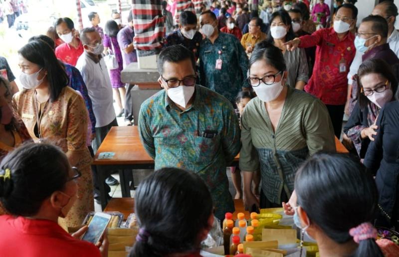 Bali Tribune/PAMERAN – Bupati Sanjaya kunjungi pameran kuliner Bali Bangkit 2022.