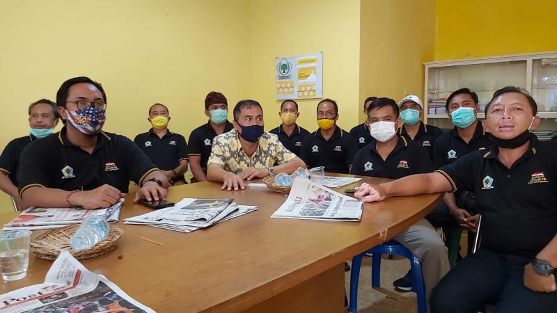Bali Tribune / PAKET SEMBAKO - Golkar Karangasem siapkan 3000 paket bantuan Sembako, nampak Kader dan pengurus DPD Golkar Karangasem usai memberikan keterangan Pers kepada wartawan