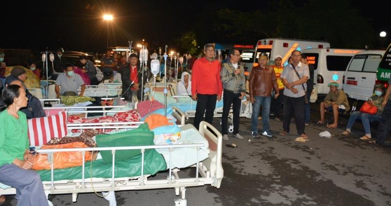 BALI TRIBUNE - Gempa yang terjadi pada hari Minggu sekitar Pukul 19.00 Wita ini mendapat perhatian khusus dari Pemerintah Kabupaten Badung. Salah satunya gerak cepat dari Wakil Bupati Badung I Ketut Suiasa yang langsung meninjau evakuasi pasien di RSUD Mangusada, Minggu (5/8) malam. Turut hadir dalam kesempatan tersebut Direktur RSUD Mangusada Kapal I Nyoman Gunarta, Kepala Dinas Kebakaran dan Penyelamatan I Wayan Wirya, Kadis Kedaruratan dan Logistik Ni Nyoman Ermy Setiari. Dalam kesempatan tersebut Wabup Suiasa memberikan apresiasi atas sinergitas antara RSUD Mangusada, Dinas Damkar, dan BPBD Badung dengan bergerak cepat mendirikan tenda darurat di halaman RSUD Mangusada Kabupaten Badung, “malam hari ini saya mengunjungi langsung dan melihat kondisi pasien, pasca telah terjadinya suatu kejadian alam berupa gempa tadi dan dalam kondisi gempa ini tentu kita harus mengambil langkah – langkah yang sigap dalam melakukan atisipasi yang sebaik – baiknya sesuai dengan keadaan dan kemampuan yang kita miliki. Lebih lanjut Suiasa mengatakan menyikapi kejadian ini diharapkan instansi terkait secara sigap dan terkoordinir dalam langkah pengamanan kepada masyarakat, untuk melakukan langkah antisipasi rasa kekhawatiran khususnya gempa susulan, tentu diharapkan tidak terjadi itu. Demi amannya kondisi dan tenangnya para pasien, Proses Layanan Kesehatan, Merawat, Pemeriksaan dan lainnya bisa berjalan sebagaimana mestinya untuk itu dilakukan langkah darurat dengan membuat tenda, di halaman pakir Rumah Sakit Daerah RSUD Mangusada Badung. Dengan didirikan tenda darurat ini sebagai pengayom yang melindungi para pasien, dengan ketersediaan tenda ini sudah kita hitung cukup karena sudah semua team bergerak, melalui team terpadu baik itu dari Pemadam Kebakaran yang juga memiliki sarana dan prasarana, Badan Penanggulangan Bencana Daerah yang juga memiliki sarana dan prasarana yang sudah dikerahkan disini termasuk tenaga – tenaga lapangan kita seperti Tenaga Teknis, Petugas Kesehatan untuk melakukan siaga penuh dalam perawatan kepada masyarakat. “Artinya masyarakat dilayani dalam tempat sementara dan darurat ini tetapi dari segi layanan tidak sedikit pun yang kita kurangi atau tidak ada masyarakat yang mendapatkan kurang dalam hal pelayanan kepada masyarakat” ungkapnya. Direktur RSUD Mangusada Kapal I Nyoman Gunarta mengatakan total ada 160 pasien yang di evakuasi keluar, dan yang di atas masih ada 3 pasien, 1 pasien di ICU yang sedang menggunakan petilatror yang sudah kita siagakan 2 orang perawat 1 orang pasien beserta keluarganya, di Ruang Jantung di ICU ada 2 pasien dengan tripikasi obat dengan keluarganya disana dengan 3 orang perawat dan 1 orang Satpam. Untuk pasien Bayi kita sudah bawakan turun karena takut ada Hiportemi karena pasiennya berat badannya lahir berat kita siagakan diruang ICU dengan mesin Sensipetnya. Untuk sumber tendan dari BPBD yang kita dapat dari bantuan seperti ini, dari Damkar, dari BPBD dan kemudian kita juga sewa tenda sebanyak 20 tenda. Lebih lanjut pihaknya akan menunggu berita dari BNKG jika dikatakan potensi terjadinya gempa susulan memiliki kemungkinan kecil, akan ditawarkan kepada pasien untuk kembali ke ruangan tapi kalau memang pasien merasa lebih nyaman dan nyaman dirawat di luar ruangan akan disediakan perawat cadangan untuk siaga ke Rumah Sakit untuk merawat pasien di luar ruangan.