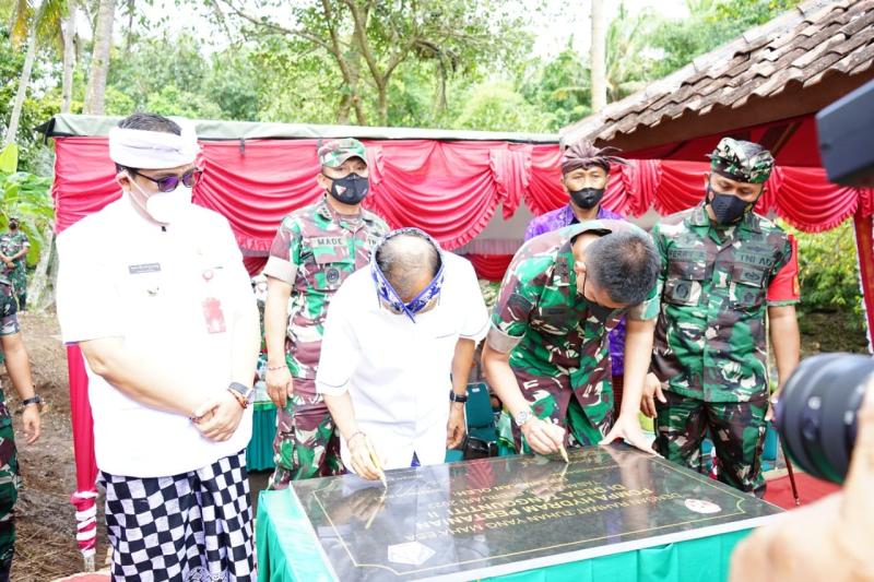balitribune.co.id | Tabanan - Pangdam IX/Udayana Mayor Jenderal TNI Sonny Aprianto dan Gubernur Bali Wayan Koster meresmikan Pompa Hydram di Banjar Batan Buah, Desa Tangguntiti, Selemadeg Timur Tabanan, Selasa (15/2/2022).