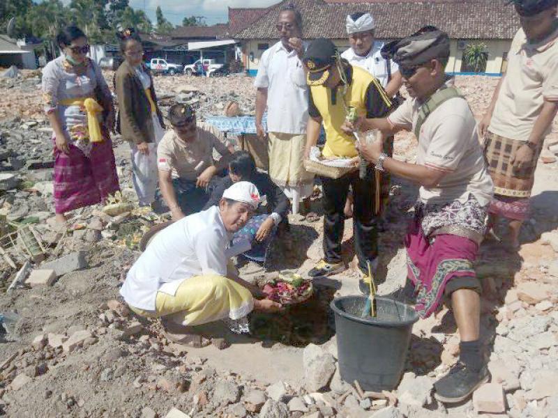 BALI TRIBUNE - Proses pembangunan  rumah susun (Rusunawa) Asrama Polres Bangli mulai dikerjakan, ini ditandai dengan dilangsungkanya upacara  Ngeruak. Proses upacara Ngeruak dipuput Ida Begawan Sri Ananda Acarya ,Jumat (4/5). Hadir Kabag Paskon Ro Sarpras Polda Bali,AKBP A.A.Sri Sueli,Wakapolres Bangli,Kompol  I Ketut Gelgel.