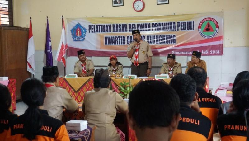 BALI TRIBUNE - Seorang anggota pramuka harus mampu mengambil peran untuk mengatasi berbagai persoalan di masyarakat. Selain aktif di bidang kepedulian sosial, anggota pramuka juga harus bisa menumbuhkan kepedulian itu kepada anggota lainnya termasuk kepada masyarakat dalam berbagai bidang. Demikian sambutan Bupati Klungkung I Nyoman Suwirta yang dibacakan Wakil Bupati Klungkung I Made Kasta pada pembukaan Pelatihan Dasar Relawan Pramuka Peduli Kwarda Bali dari Kwarcab Klungkung di SDN 1 Semarapura Kangin, Sabtu (7/7). Menurut Wabup Kasta, keberadaan anggota pramuka sebagaimana disimbolkan melalui tunas kelapa, yang mana salah satunya diartikan mampu hidup dan berada dimanapun juga, secara arti luas juga harus mampu berperan dalam berbagai dimensi kondisi sosial di masyarakat. “Jadi kehadiran pramuka peduli disamping untuk ikut ambil bagian dalam mengatasi berbagai dampak bencana seperti dampak erupsi Gunung Agung yang belakangan memerlukan perhatian bersama, juga mampu menumbuhkan kepedulian diberbagai bidang,” ujar Wabup Kasta. Wabup Kasta yang juga Ketua Kwarcab Klungkung ini berharap anggota pramuka berperan aktif dalam mengatasi masalah sampah dan mensosialisasikan pola TOSS (Tempat Olah Sampah Setempat) yang sedang dikembangkan di Kabupaten Klungkung. Demikian juga terhadap inisiatip relawan pelestarian penyu di berbagai wilayah di Kabupaten Klungkung, anggota pramuka peduli diharapkan mampu ikut berperan didalamnya, termasuk menjadi pelopor tertib berlalu lintas, motivator donor darah dan berbagai kegiatan kemanusiaan lainnya. “Apresiasi dan penghargaan kami sampaikan atas terselenggaranya pelatihan relawan pramuka peduli,” ucapnya. Sekretaris Pramuka Kwarcab Klungkung, Ngakan Made Kasub Sidan menyampaikan, pembentukan relawan pramuka peduli menjadi prioritas penting dan memiliki peran strategis dalam penguatan pendidikan karakter, menjadikan SDM yang memiliki kompetensi, keterampilan dan kepekaan sosial dalam berbagai bidang. Pembentukan relawan pramuka peduli akan dilakukan disemua Kecamatan di Kabupaten Klungkung. Untuk pelatihan saat ini dilaksanakan selama sehari, yang melibatkan 117 anggota relawan pramuka peduli dari siswa SMA dan SMK yang telah mendaftar secara sukarela. “Sesuai tujuan gerakan pramuka adalah membentuk setiap anggota untuk memiliki kepribadian yang berakhlak mulia, berjiwa patriotik, disiplin dan menjunjung tinggi nilai-nilai luhur bangsa,” sebutnya. Hadir dalam pembukaan pelatihan dasar relawan pramuka peduli Kwarcab Klungkung, perwakilan pengurus pramuka Kwarda Bali, UPT Dinas Pendidikan Provinsi Bali di Kabupaten Klungkung serta para pengurus pramuka Kwarcab Klungkung.
