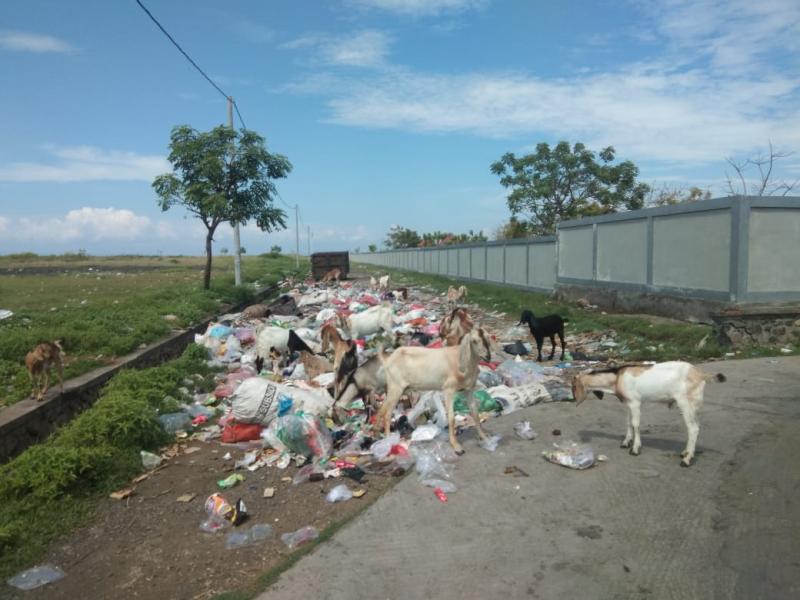 Dari pengamatan, Rabu (4/11), di lokasi sejatinya sudah ditempatkan satu unit kontrainer sampah  namun tong berukuran besar tersebut kosong. Sedangkan sampah tampak berserakan di luar container lantaran warga membuang sampahnya di luar container sampah. Tumpukan sampah yang meluber ini juga menjadi tempat mencari makan gerombolan kambing dan sapi milik warga yang diliarkan. Warga sekitar justru mengaku sampah di lokasi belum diangkut oleh petugas pengangkut sampah.
