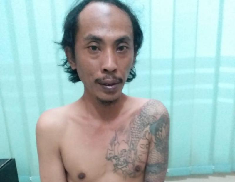 Bali Tribune/ KESAL – Tersangka pembunuh janda pemilik toko bangunan, Sakin Fadilah mengaku kesal karena dimaki-maki.