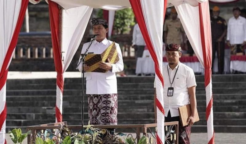 Gubernur Bali dalam sambutannya yang dibacakan oleh Bupati Suwirta mengatakan Pembangunan Provinsi Bali diselenggarakan dengan Visi Nangun Sat Kerthi Loka Bali melalui Pola Pembangunan Semesta Berencana menuju Bali Era Baru, yang telah dituangkan dalam Rencana Pembangunan Jangka Menengah Daerah (RPJMD) Semesta Berencana Provinsi Bali Tahun 2018-2023, dilaksanakan secara konsisten, teguh pendirian, dan komitmen kuat. Visi ini adalah untuk menjaga Alam, Manusia, dan Kebudayaan Bali secara NiskalaSakala.