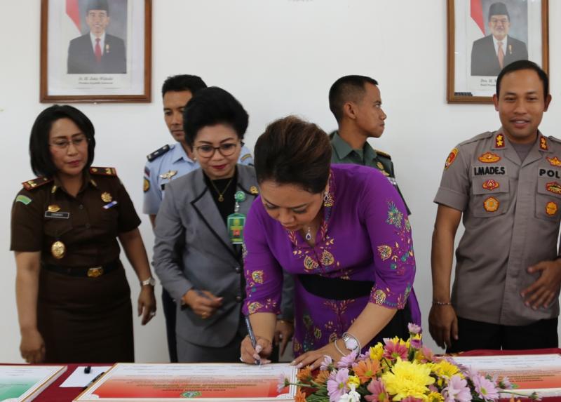 Bali Tribune, Tabanan - Pemerintah Kabupaten Tabanan semakin memantapkan upaya memerangi korupsi agar menyentuh seluruh lini mulai dari Aparat Pemerintah sampai ke masyarakat. Mengacu pada instruksi Presiden Nomor 10 tahun 2016, melalui Penandatanganan Zona Integritas Menuju Wilayah Bebas Korupsi Kabupaten Tabanan Tahun 2019, bekerjasama dengan seluruh Forum Koordinasi Pimpinan Daerah (Forkompinda) Tabanan, di Ruang Rapat Kajari Tabanan, Kamis (14/2). Kegiatan tersebut dihadiri oleh seluruh Forkompinda Tabanan, diantaranya Kepala Kajari Tabanan Ni Wayan Sinaryati, Kapolres Tabanan AKPB Made Sinar Subawa, Ketua Pengadilan Tinggi Tabanan Made Sukereni, Dandim 1619 Udayana Hasan Abdullah, Perwakilan Kalapas Tabanan, Ketua DPRD Tabanan I Ketut Suryadi, Wakil Ketua DPRD Tabanan, juga hadir Sekkab Tabanan I Gede Susila. Bupati Eka menjelaskan, sebelumnya telah dibentuk tim koordinasi dan supervisi pencegahan korupsi di tingkat Kabupaten, yang secara berkala melakukan update data melalui aplikasi MCP (Monitoring Centre for Prevention) yang dipantau langsung oleh KPK RI. Dijelaskannya, pemantauan meliputi 8 (delapan) area intervensi, diantaranya Perencanaan dan Penganggaran APBD, Pengadaan Barang dan Jasa, Pelayanan terpadu Satu Pintu, Kapabilitas APIP, Manajemen ASN, Dana Desa, Optimalisasi Pendapatan Daerah dan Manajemen Aset Daerah. Diakuainya bahwa Pemkab Tabanan juga telah melakukan berbagai langkah dalam meningkatkan tata kelola Pemerintahan dengan capaian kinerja dan prestasi seperti, Penyajian Laporan Keuangan secara tepat waktu serta berhasil mempertahankan Opini Wajar Tanpa Pengecualian (WTP) oleh BPK. Hasil Evaluasi Akuntabilitas Kinerja yang dilaksanakan oleh kementrian PAN-RB telah mendapat predikat penilaian B sejak tahun 2017.  Dirinya mengungkapkan kebanggaanya atas terselenggaranya acara penandatanganan Zona Integritas Menuju Wilayah Bebas Korupsi Kabupaten Tabanan Tahun 2019 ini. “Tentunya ada spirit kebersamaan disini yang ingin kita tampilkan. Untuk itu, tidak mengurangi niat kita, acara ini sangat luar biasa, tempatnya juga pas, penyambutannya juga pas penuh dengan nuansa kekeluargaan. Karena Saya berharap Tabanan ini bisa dibangun dengan rasa kasih, rasa memilikki, rasa peduli, untuk meberikan yang terbaik, khususnya pelayanan terhadap masyarakat,” harap Eka. Kepala Kajari Tabanan, Ni Wayan Sinaryati mengungkapkan Zona Integritas adalah suatu Predikat yang diberikan kepada instansi Pemerintah yang berkomitmen mewujudkan Wilayah Bebas Korupsi (WBK) dan Wilayah Birokrasi Bersih dan Melayani (WBBM) melalui reformasi birokrasi yang merupakan salah satu langkah awal untuk melakukan penataan terhadap sistem penyelenggaraan Pemerintahan yang baik, efektif dan efisien.  Dirinya mengaku siap menunjukkan komitmen dalam pelayanan publik terhadap masyarakat. Berharap, penandatanganan zona integritas ini bukan hanya menjadi seremonial saja, melainkan menjadi langkah awal yang nantinya disusun dengan tindakan nyata dalam mewujudkan WBK dan WBBM.