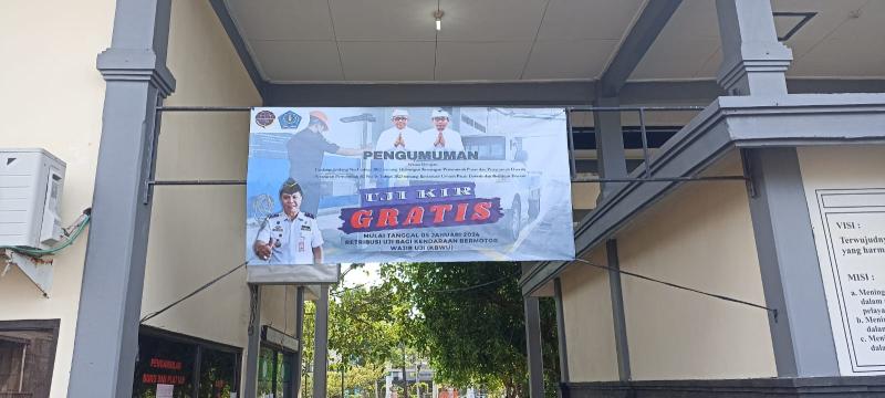 Bali Tribune / GRATIS - Spanduk Pengumuman Gratis Uji KIR Kendaraan Bermotor