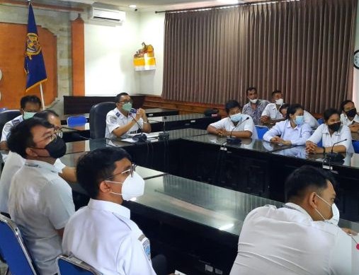 Bali Tribune/RAPAT- Rapat pembahasan terkait kembali beroperasinya angkutan layanan Trans Sarbagita di Denpasar, Senin (31/1/2022).