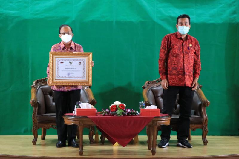 Penghargaan ini diterima Gubernur Bali Wayan Koster didampingi Inspektur Provinsi Bali I Wayan Sugiada pada Rapat Koordinansi Pengawasan Penyelenggaraan Pemerintah Daerah Secara Nasional (Rakorwasdanas) Tahun 2021 dirangkaiakan dengan Launching Pengelolaan Bersama Monitoring Center of Prevention (MCP) Pencegahan Korupsi secara virtual di Ruang Rapat Gedung Gajah, Jaya Sabha, Denpasar pada Selasa (31/8).