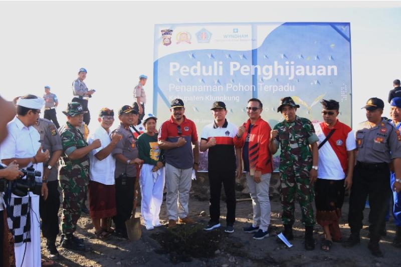 Bupati Klungkung I Nyoman Suwirta yang memimpin kegiatan Penanaman Pohon pebghijauan ini bersama Kapolres Klungkung di areal Hotel Whyndam Pantai Lepang, Kecamatan Banjarangkan Kabupaten Klungkung, Jumat (10/1) pagi. Kegiatan ini dilaksanakan dalam rangka Peduli Penghijauan, turut hadir Wakil Bupati Klungkung I Made Kasta bersama Ny. Sri Kasta, Waka Polres Klungkung IB Dedi Januartha,SH bersama jajarannya, GM Whyndam Resort Indra Budiman  bersama Karyawannya, jajaran Kodim 1610 Klungkung, OPD terkait serta para siswa.