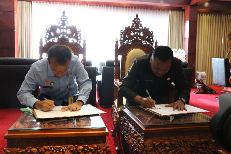 Bali Tribune/MOU Bupati Gianyar dengan Kakanwil Menkumham Bali.