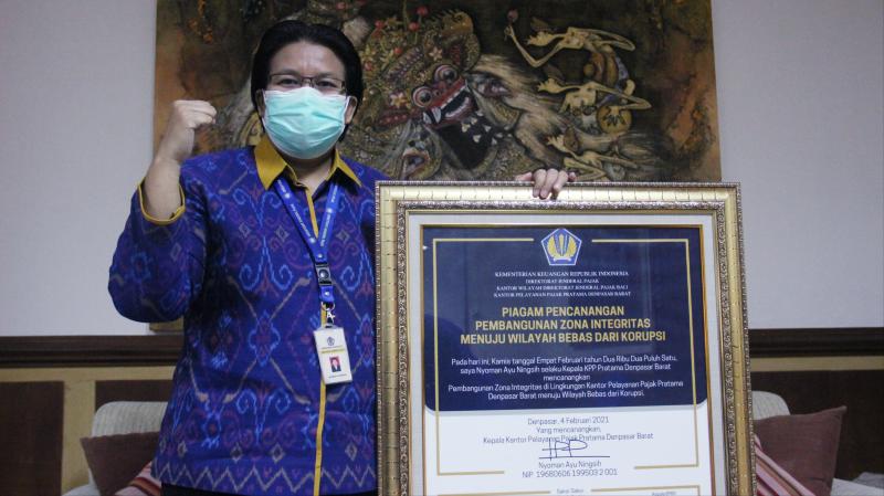 balitribune.co.id | DenpasarSelaras dengan upaya Pembangunan Wilayah Bebas dari Korupsi (WBK) dan WIlayah Birokrasi Bersih dan Melayani (WBBM) di lingkungan Instansi Pemerintah sesuai Peraturan Menteri Pendayagunaan Aparatur Negara dan Reformasi Birokrasi nomor 52 Tahun 2014, Kepala Kantor Pelayanan Pajak (KPP) Pratama Denpasar Barat, Nyoman Ayu Ningsih menyelenggarakan Pencanangan Pembangunan Zona Integritas Menuju Wilayah Bebas dari Korupsi (ZI-WBK),  secara daring, Kamis (4/2)