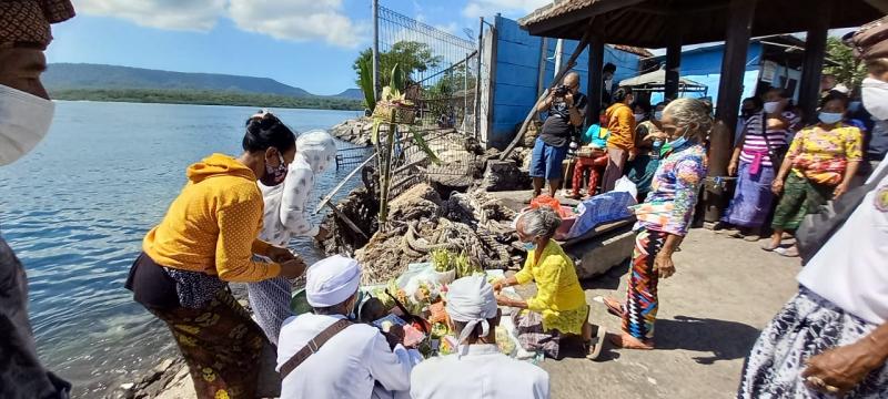Warga Desa Karyasari, Kecamatan Pupuan, Tabanan ini menggelar upacara nebusin di ujung dermaga LCM yang menghadap ke periran selat Selat Bali. Bibi korban, Nyoman Darmini mengatakan keponakannya yang bekerja sebagai sopir truck lintas Jawa-Bali tersebut, sejak kapal yang ditumpanginya dinyatakan tenggelam hingga kini belum ditemukan dan tidak menerima kabar apapun. "Kalau selamat tentu dia sudah pulang dan memberi kabar. Namun ini tidak ada kabar sama sekali,” ujarnya.