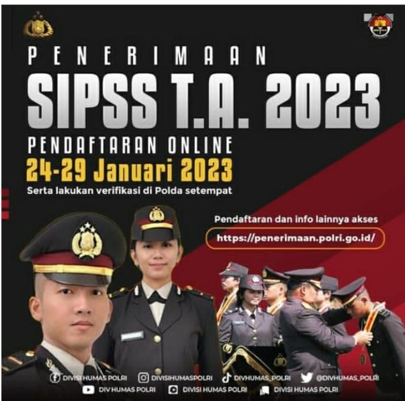 Pendaftaran SIPSS tersebut secara online melalui website https://penerimaan.polri.go.id, mulai tanggal 24 sampai dengan 29 Januari 2023. Untuk calon peserta dari Provinsi Bali dapat melakukan verifikasi di Biro SDM Polda Bali”