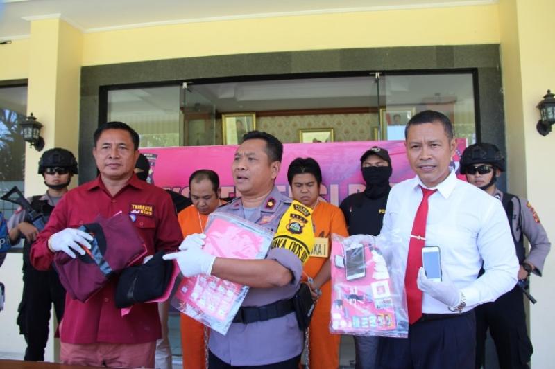 balitribune.co.id | Semarapura - Sat Narkoba Polres Klungkung menindaklanjuti setiap laporan masyarakat terkait peredaran narkoba yang ada di wilayah Klungkung. Senin (1/4), Wakapolres Klungkung Kompol Ida Bagus Dedi Januartha,S.H.,M.H membeber keberhasilan Polres Klungkung dalam menggulung sindikat barang gelap ini dimasyarakat. Kedua Tersangka pengedar diperlihatkan pada media dengan tangan dan kakinya diborgol. Kasat AKP. I Gusti Ngurah Yudistira,, SH.MH. didampingi Kasubag Humas Polres Klungkung AKP. Putu Gede Ardana, SH mengumumkan keberhasilan jajarannya menangkap Tersangka Pengedar Narkoba diwilayah Kabupaten Klungkung. Dua tersangka yang juga oknum Anggota Ormas terkenal di Bali (LB) di tangkap oleh Satuan Resnarkoba Polres Klungkung yaitu Putu Surya Hadinata alias Tukek (tersangka 1, umur 33), tempat/tanggal lahir Singaraja, 11 Nopember 1985, Alamat Lingk Br. Pande Semarapura Kelod Kangin Klungkung, Kecamatan Klungkung, dan I Putu Eka Putra alias Cedol (tersangka 2, umur 36 tahun) Alamat Dusun Peninjoan Desa Paksebali Kecamatan Dawan Kabupaten Klungkung. Dari tangan tersangka di amankan 10 (sepuluh) buah paket Kristal bening dibungkus plastic klip yang dduga mengandung narkotika dengan berat total : 4,26 gramBruto atau 1,9 gram netto dan 1 (satu) buah HP merk Iphone 5 warna gold. Keberhasilan Polisi memangkap kedua tersangka ini berdasarkan informasi dari masyarakat bahwa ada peredaran gelap narkotika di wilayah Desa Paksebali, Dawan, Klungkung. Kemudian jajaran anggota unit lidik sat Narkoba Polres klungkung melakukan penyelidikan dari kemudian berhasil melakukan penangkapan terhadap tersangka pada Jumat (8/3) lalu sekira pukul 20.30 Wita. Dari keterangan tersangka 1 kemudian anggota Tim Sat Narkoba melaksanakan penyelidikan di sebuah rumah di wilayah Denpasar, Polisi berhasil menggelandang satu tersangka lagi beserta barang bukti. Berdasarkan analisa fakta dan analisa yuridis yang didukung dengan barang bukti yang berhasil diamankan maka kedua tersangka sebagaimana dimaksud dalam pasal 114 ayat (1) atau 112 ayat (1) UU RI No. 35 Tahun 2009 : Setiap orang yang tanpa hak atau melawan hukum, menawarkan untuk dijual, menjual, membeli, menerima, menjadi perantara dalam jual beli menukar atau menyerahkan Narkotika Golongan I , dipidana dengan pidana penjara seumur hidup atau pidana penjara paling singkat 5 tahun dan paling lama 20 tahun, dan pidana denda paling sedikit Rp1.000.000.000, dan paling banyak Rp10.000.000.000. Dari pengakuan Tersangka I maupun Tersangka II dia mengaku sebagai anggota salah satu ormas besar di Bali selama beberapa tahun.