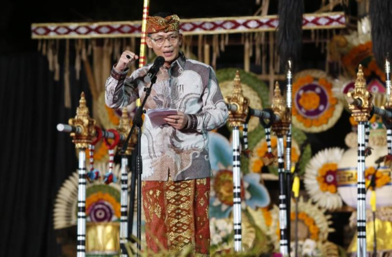 Dalam sambutannya, Bupati I Made Satria menekankan pentingnya peran generasi muda dalam pelestarian seni dan budaya.