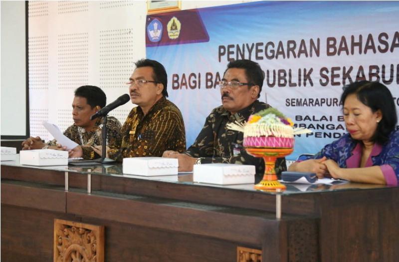 BALI TRIBUNE - Kegiatan penyuluhan Bahasa Indonesia bagi Badan Publik merupakan kebijakan untuk membuat perencanaan cara membina dan mengembangkan bahasa sebagai alat komunikasi verbal yang dapat  diterima oleh segenap lingual etnis dan cultural yang berbeda.  Hal itu disampaikan Sekda Kabupaten Klungkung I Gede Putu Winastra saat membuka Kegiatan Penyegaran Bahasa Indonesia Bagi Badan Publik se-Kabupaten Klungkung, bertempat di Ruang Rapat Badan Pengelolaan Keuangan dan Pendapatan Daerah (BPKPD) Kabupaten Klungkung, Selasa (2/10). Sambutan Bupati Klungkung I Nyoman Suwirta yang dibacakan Sekda I Gede Putu Winastra menyampaikan, kegiatan penyuluhan ini nantinya diharapkan dapat memberikan pencerahan dalam penyusunan naskah dinas, karena banyak dokumen resmi lembaga pemerintah daerah ataupun pemerintah desa yang masih menyimpang dari kaidah Bahasa Indonesia,  baik dalam ejaan, kalimat maupun paragraph. “Kegiatan ini diikuti dengan sebaik-baiknya dan ilmu yang diperoleh dapat diterapkan di masing-masing tempat serta dapat menjadi contoh dalam penggunaan Bahasa Indonesia yang baik dan benar bagi masyarakat,” harapnya. Ketua Panitia Balai Bahasa Bali Ida  Ayu  Putu Ariawati menyampaikan kegiatan ini mengambil sebuah tema  yakni Penyegaran Bahasa Indonesia bagi badan Publik se-Kabupaten Klungkung. Kegiatan ini juga merupakan salah satu rangkaian program rutin tahunan Balai Bahasa Bali, adapun juga tujuan kegiatan ini yaitu untuk meningkatkan pengetahuan, keterampilan dan kualitas penggunaan bahasa Indonesia dengan baik dan benar para konseptor pemerintah dari perangkat kecamatan dan lurah/desa dalam menyusun dokumen resmi lembaga pemerintahan. Kegiatan ini dilaksanakan selama tiga hari 2-4 Oktober dengan diikuti oleh 40 orang peserta. Kegiatan tersebut juga dihadiri Kepala Balai Bahasa Bali I Wayan Tama, Katua Panitia Balai Bahasa Bali Ida  Ayu  Putu Ariawati, serta para perangkat desa se-Kabupaten Klungkung.