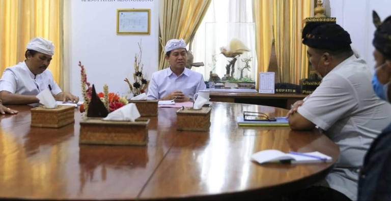 balitribune.co.id | Semarapura - Bupati Klungkung I Nyoman Suwirta menerima audiensi Tim Cagar Budaya yang dipimpin Kepala Dinas Kebudayaan Klungkung, Ida Bagus Jumpung Gede Oka Wedana diruang rapat kantor Bupati Klungkung, Selasa (28/6/2022). Pertemuan ini dalam rangka percepatan penetapan sejumlah usulan objek menjadi cagar budaya.