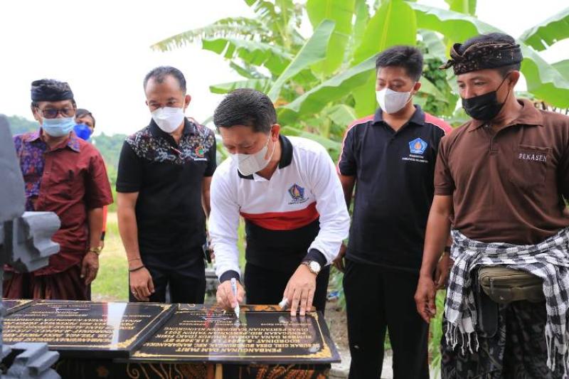 balitribune.co.id | Semarapura - Bupati Klungkung I Nyoman Suwirta meresmikan Irigasi air tanah dangkal di Subak Telaga, Desa Pikat, Kecamatan Dawan, Kabupaten Klungkung, Sabtu (15/1/2022). Pembangunan irigasi air tanah dangkal ini dalam rangka meningkatkan ketersediaan air irigasi pada lahan pertanian Subak Telaga seluas 47 Ha, terutama pada lahan kering dan tadah hujan serta meningkatkan produktivitas usaha tani.