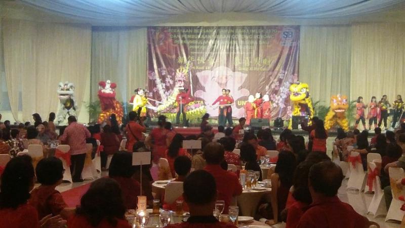 Bali Tribune, Denpasar - Sekitar 500-an anggota perkumpulan senam Andrie Wongso (AW) yang mempopulerkan gerakan senam sehat, semangat, dan senang (S3) “Siwa Bali” menggelar pentas seni juga menghadirkan 4 barongsai dan naga di Hongkong Garden Restaurant, Sanur, Denpasar, Minggu (17/2) malam. Bahkan, selain ikut menyambut langsung kedatangan para tamu undangan, sang Pembina AW S3 Siwa Bali, Wiratni juga bagi-bagikan angpao kepada setiap orang yang hadir dalam acara tersebut. Pasalnya gebyar pentas seni yang bernuansa serba merah tersebut sengaja dihelat untuk memeriahkan perayaan bersama Tahun Baru Imlek 2570, sekaligus menandai pembukaan arisan “Gotong Royong” AW S3 Siwa Bali. “Terima kasih atas segala bentuk pastisipasinya dan sudah berkenan meluangkan waktu untuk bersama-sama menghadiri acara dari kita untuk kita, yaitu perayaan bersama Tahun Baru Imlek 2570,” ujar Ketua Umum (Ketum) AW S3 Siwa Bali, Juniwati, didampingi Eva Carolina Tio (ketua pelaksana harian). Acara yang berlangsung meriah penuh kekeluargaan dan kebersamaan itu diawali dengan doa yang dipimpin Jro Mangku Putu Partiwi. Dilanjutkan dengan jamuan makan malam bersama dan dimeriahkan oleh sederet penampilan menarik dan atraktif yang dikemas dalam pentas gerak musik dan lagu oleh sejumlah anggota AW S3 Siwa Bali. Turut tampil menghibur diatas stage nan megah, paduan suara AW S3 Siwa Bali diselingi atraksi 4 barongsai dan naga. Kemudian, Eva dan Ayun (panggilan akrab Juniwati) memberikan bunga tangan sebagai apresiasi dan penghargaan kepada sang Bunda Wiratni, dilanjutkan dengan sesi foto bersama. Seolah menambah kecerian dan kemeriahan acara semalam, secara bergiliran para artis penyanyi dan penari AW S3 Siwa Bali turut tampil menghibur ratusan tamu undangan. Kemeriahan acara diakhiri dengan goyang bersama dengan iringan lagu “Gemu Famire” dan “Kemesraan”.