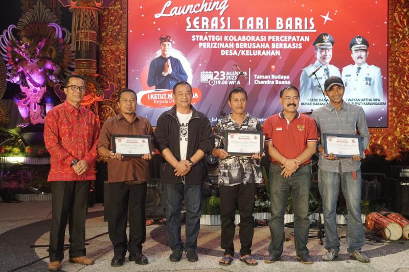 balitribune.co.id | AmlapuraBupati Karangasem I Gede Dana, resmi melaunching inovasi “Serasi Tari Baris” Strategi Kolaborasi Percepatan Perizinan Berusaha Berbasis Desa/Kelurahan, di Taman Budaya Chandra Bhuana, Amlapura, Kamis (24/8)