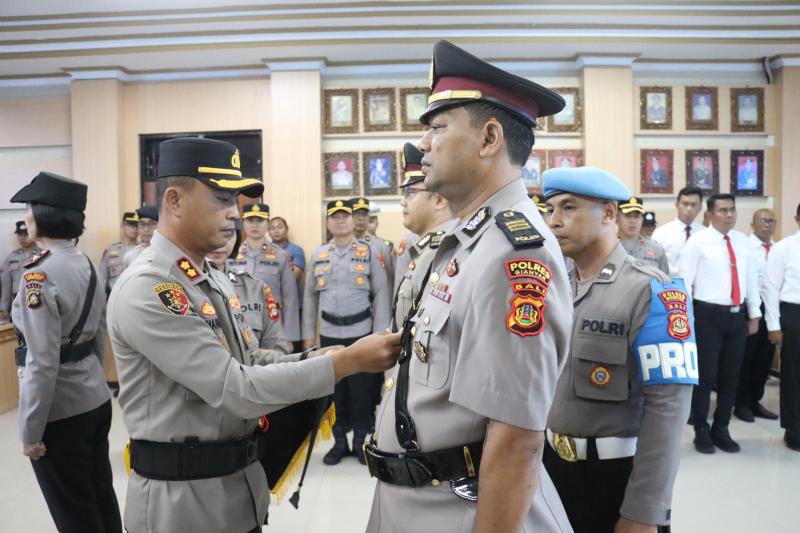 balitribune.co.id | Gianyar - Polres Gianyar melaksanakan upacara serah terima jabatan (Sertijab) Kabag SDM, Kasat Polairud, Kapolsek Payangan, serta Pelantikan Jabatan Kapolsek Blahbatuh yang berlangsung di Aula Rupatama Catur Prasetya Polres Gianyar, Kamis (8/1/2025), dipimpin oleh Kapolres Gianyar AKBP Chandra C. Kesuma, S.I.K., M.H., dihadiri Ketua Bhayangkari Cabang Gianyar beserta pengurus, Wakapolres Gianyar, para Pejabat Utama Polres Gianyar, para Kapolsek jajaran, serta perwakilan perwira, bintara, dan ASN Polres Gianyar.
