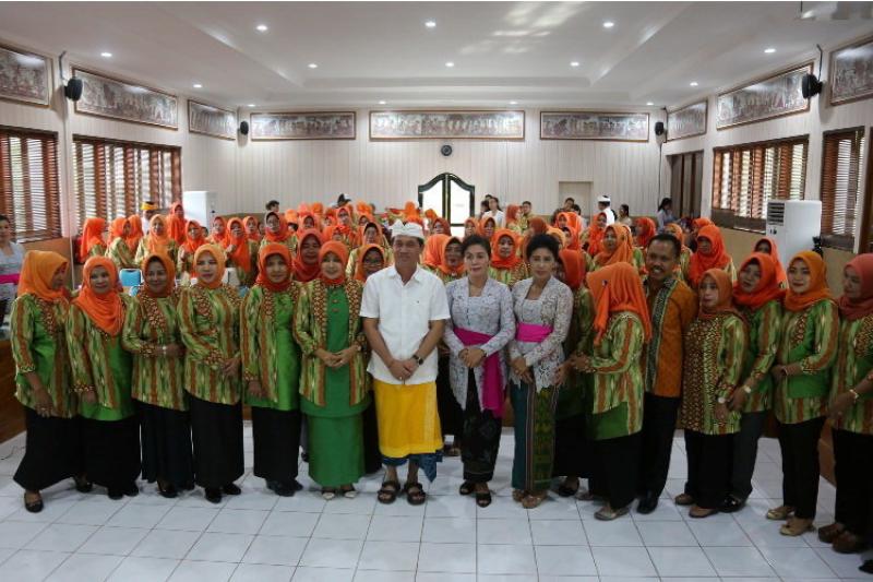BALI TRIBUNE - Prestasi yang diraih PKK Kabupaten Klungkung, yakni Pakarti Madya II pada Lomba PHBS tingkat Nasional yang dilaksanakan pada tanggal 2-4 Oktober 2018 menarik minat Anggota PKK Kabupaten Majene, Sulawesi Barat, untuk mengadakan Kunker Ke PKK Kabupaten Klungkung. Kamis (18/10), rombongan PKK Kabupaten Majene Sulawesi Barat dipimpin Ketua TP PKK Kabupaten Majene Dra. Hj. Fatmawati F, MH mengadakan kunjungan kerja ke TP PKK Kabupaten Klungkung. Rombongan PKK Kabupaten Majene diterima Bupati Klungkung I Nyoman Suwirta dan Ketua TP PKK Kabupaten Klungkung Ny. Ayu Suwirta didampingi Wakil TP PKK Kabupaten Klungkung Ny. Sri Kasta, di Ruang Rapat Praja Mandala Kantor Bupati Klungkung. Bupati Suwirta dalam pemaparannya menyatakan dalam salah satu program pemerintah yakni bedah desa, Bupati Suwirta selain mengajak Opd juga mengajak PKK di Lingkungan Kabupaten Klungkung untuk bersama-sama turun ke suatu desa untuk mengetahui dan menyelesaikan permasalahan yang terjadi didesa tersebut. Bupati Suwirta juga menyarankan kepada semua OPD di lingkungan Kabupaten Klungkung untuk bersama-sama bersinergi dengan PKK kabupaten Klungkung dalam menjalankan tugas-tugasnya, karena “Pada intinya semua kegiatan yang dilakukan oleh OPD memiliki tujuan yang sama dengan Kegiatan yang dilakukan oleh PKK,” ujar Bupati Suwirta. Ketua TP PKK Kabupaten Majene Dra. Hj. Fatmawati Fahmi, MH menyatakan tujuan rombongan PKK Kabupaten Majene ke Klungkung adalah ingin melakukan orientasi lapangan untuk mengetahui kiat-kiat dan penerapan yang dilakukan oleh PKK Kabupaten Klungkung sehingga dapat meraih juara Pakarti Madya II pada Lomba PHBS tingkat Nasional. HJ. Fatmawati sangat mengapresiasi inovasi dan program kerja yang ada di Kabupaten Klungkung. Hj. Fatmawati berharap setelah melakukan Kunjungan Kerja ke Kabupaten Klungkung, hasil yang diperoleh bisa diterapkan di Kabupaten Majene.