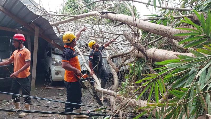 Warga yang berada di lokasi kejadian pun langsung menghubungi BPBD Karangasem dan PLN karena pohon tumbang tersebut juga menimpa kabel induk bertegangan tinggi milik PLN. Sementara tiba di lokasi kejadian, petugas BPBD Karangasem langsung berupaya melakukan penanganan dan mengevakuasi batang pohon besar tersebut sebelum kemudian petugas dari kepolisian Polsek Karangasem dibantu warga mengeluarkan seluruh mobil yang ada dalam garase ke lokasi yang aman.