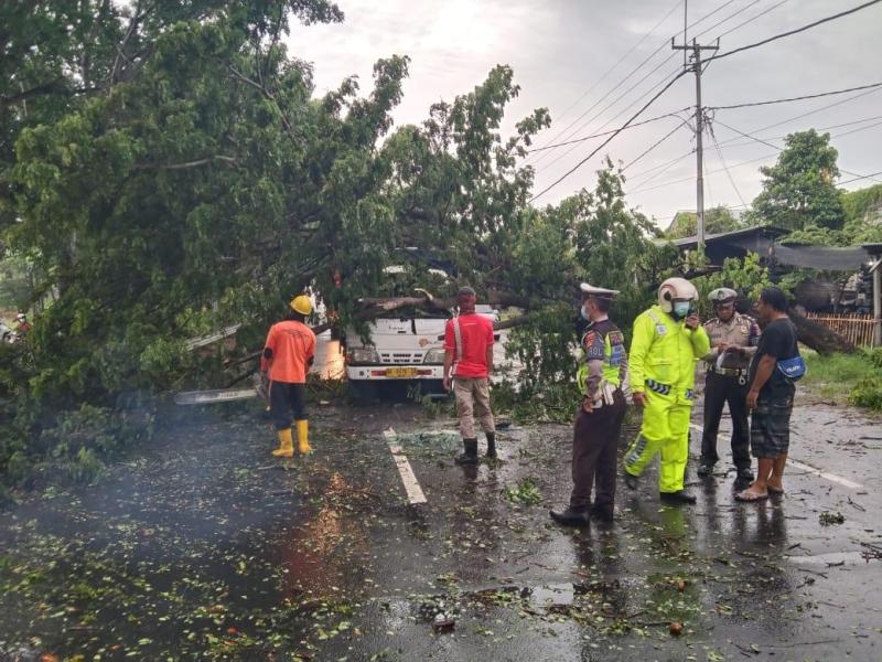 Pohon Tumbang Timpa Truk, Sopir Selamat