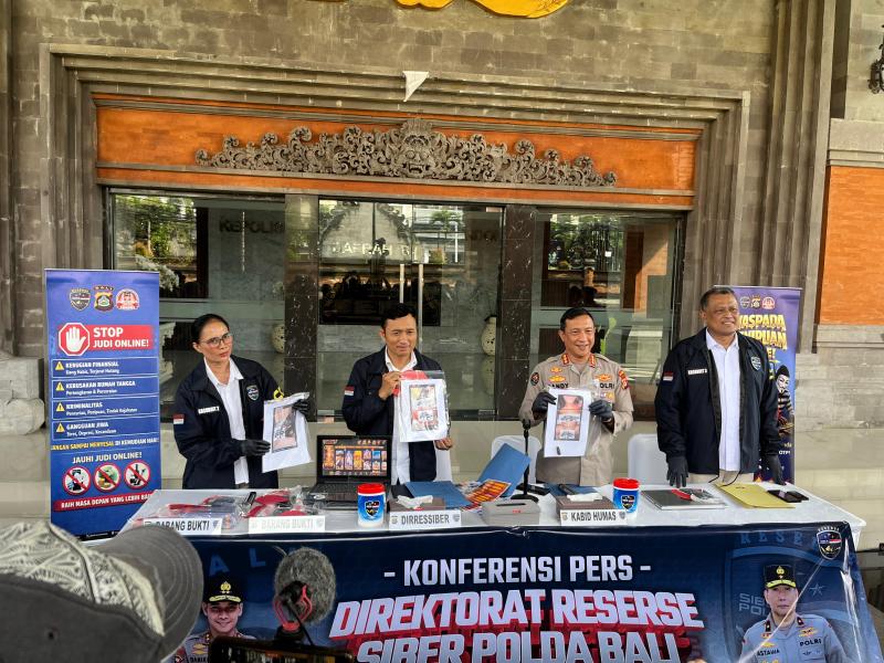 balitribune.co.id | Denpasar - Anggota Direktorat Reserse Siber Polda Bali berhasil mengungkap dua jenis kejahatan Siber besar, yaitu Judi online (judol) jaringan internasional dan praktik prostitusi serta pornografi secara daring di wilayah Denpasar, Badung, dan Gianyar. Tim dari Ditressiber berhasil membongkar markas pengelola situs judol ketua KETUA.CO dan GN77 yang beroperasi di sebuah penginapan di Jalan Pratama Gang Hasan Nomor 3 Benoa, Kuta Selatan Badung, Minggu (12/4/2026). Pengungkapan ini berawal dari Patroli Siber dan penyelidikan mendalam (undercover) yang dilakukan Tim Ditressiber Polda Bali.