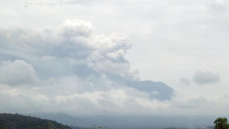 POTENSI - Gunung Agung masih menyemburkan asap tebal berwarna putih keabuan diiringi gempa tremor overscale. Ini menunjukkan bahwa potensi meletus masih tinggi.
