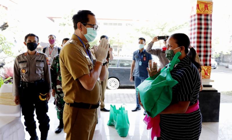 Program "Guru dan Disdikpora Badung Belajar dari Covid-19", Wabup Suiasa Bagikan Paket Sembako kepada Orangtua Siswa Terdampak Covid-19