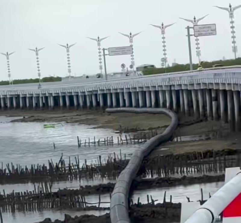Bali Tribune / PIPA AIR - Penampakan pipa bawah laut yang membentang di bawah tol Bali Mandara. Pipa ini milik PDAM Tirta Mangutama untuk mengalirkan air ke wilayah Kuta Selatan.