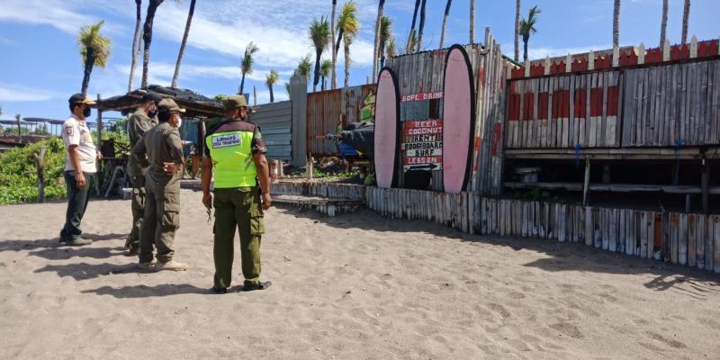 Bali Tribune / BANGUNAN LIAR - Tim Gabungan bersama petugas Satpol PP Badung saat memantau bangunan liar di Pantai Berawa.