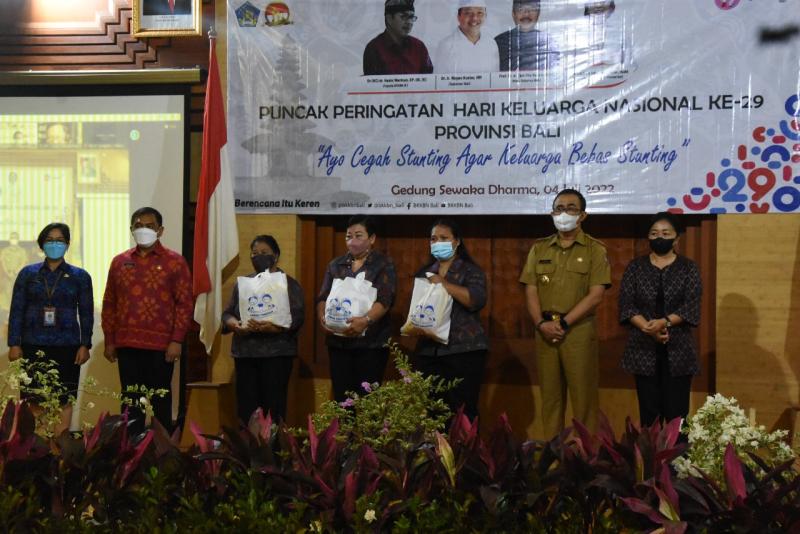 Pada kesempatan itu, Kadis Kesehatan Provinsi Bali, dr. I Nyoman Gede Anom menyampaikan peringatan Harganas yang tahun ini mengangkat tema "Ayo Cegah Stunting, Agar Keluarga Bebas Stunting," mengajak dan berupaya maksimal untuk menurunkan stunting. Hal ini agar pemda harus mampu memperioritaskan sumber dayanya  dalam meningkatkan cakupan pelayanan kepada kelompok sasaran, meliputi remaja, calon pengantin, ibu hamil,  ibu menyusui dan anak usia 0-59 bulan.