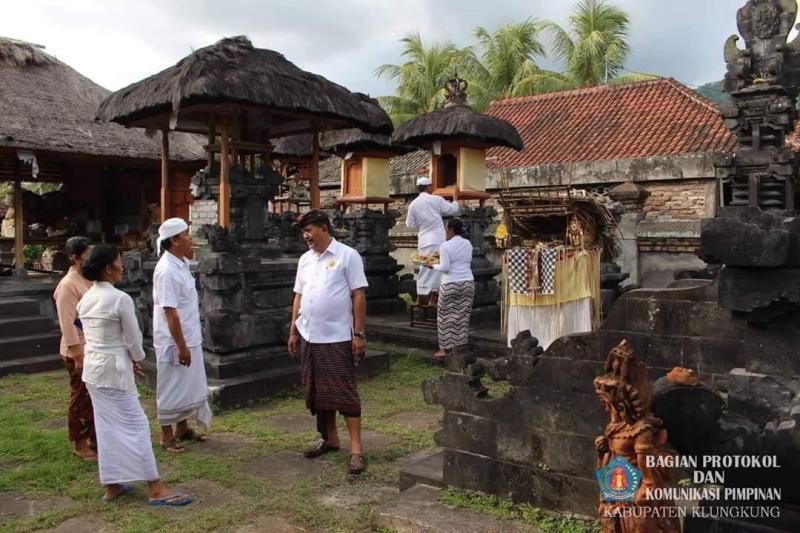 Bali Tribune/Wabup Made Kasta serahkan punia di pura Penataran Tangkas Kori Agung