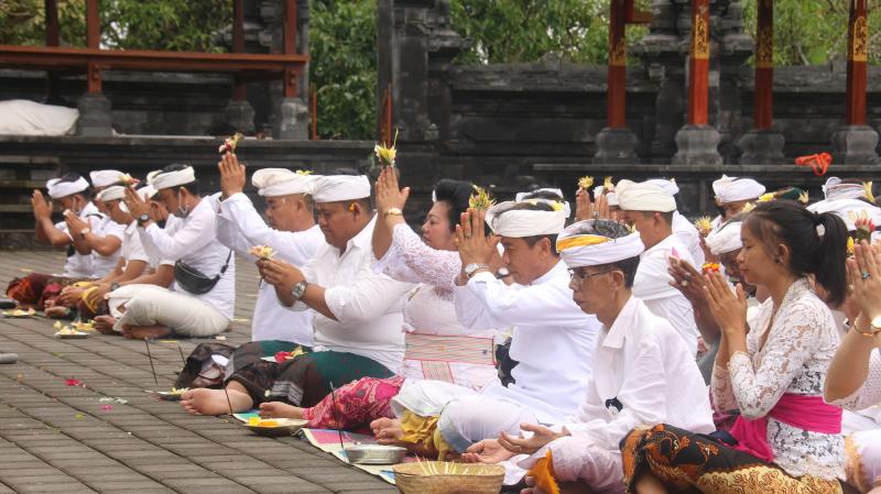 Persembahyangan Purnamaning Sasih Kelima di Pura Penataran Nangka, yang jatuh pada Sabtu (31/10/2020) ini berlangsung khidmat dengan dipimpin oleh Pemangku Pura setempat. Kepada awak media usai melaksanakan persembahyangan, Cabup Nomor Urut 2, I Gusti Ayu Mas Sumatri didampingi Cawabup I Made Sukerana menyampaikan, Purnamaning Sasih Kelima memeliki makna penyucian diri lahir dan bathin. Untuk itu pihaknya memanfaatkan hari yang baik ini untuk melakukan persembahyangan, mulai dari padmasana di rumah, di desa dan di Pura Penataran Nagka yang merupakan Pura Khayangan.