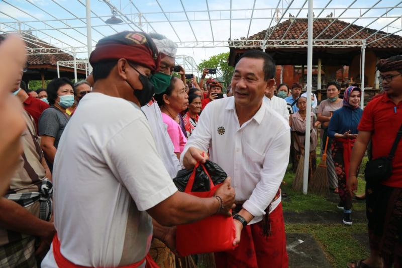 Usai kegiatan bersih-bersih areal pelataran pura, kegiatan dilanjutkan dengan penyerahan tong sampah, sapu, alat pel, ember dari Kementrian Sosial sebelum kemudian dilaksanakan penyerahan bantuan 100 paket Sembako kepada warga kurang mampu, Lansia dan penyandang Disabilitas.