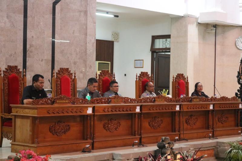 Bali Tribune / RANPERDA - Rapat paripurna mendengar tanggapan Bupati Buleleng atas pemandangan umum Fraksi DPRD terhadap Ranperda Pertanggungjawaban Pelaksanaan APBD Tahun Anggran 2022, Rabu (12/7).