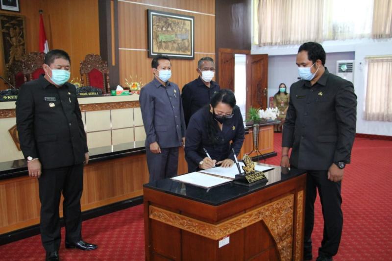 Penetapan ketiga Ranperda tersebut menjadi Perda melalui Keputusan DPRD Kabupaten Jembrana nomor 11 tahun 2020 tentang Persetujuan Penetaapan Rancangan Pertauran Daerah menjadi Peraturan Daerah. Persetujuan penetapannya ditandai dengan penandatanganan Berita Acara oleh Pimpinan DPRD Kabupaten Jembrana dan Bupati Jembrana, Ketua DPRD Kabupaten Jembrana, Ni Made Sri Sutharmi menyatakan akan menyelesaikan koreksi atas ketiga Ranperda tersebut.