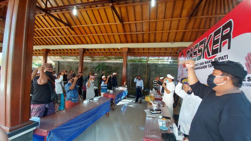 Sekaligus dalam kesempatan tersebut, para pengelingsir dadia ini menyatakan kebulatan tekad dan menyatukan kata untuk berjuang memenangkan pasangan Calon Bupati-Wakil Bupati Karangasem, I Gusti Ayu Mas Sumatri-I Made Sukerana (Massker) yang diusung oleh Koalisi Karangasem Hebat (KKH) 2 tersebut di Kecamatan Sidemen. Dalam kesempatan itu, sejumlah pengelingsir dadia juga menyampaikan sejumlah aspirasi untuk ditindaklanjuti. Diantaranya perbaikan akses jalan, dan bantuan sambungan listrik di Pura.