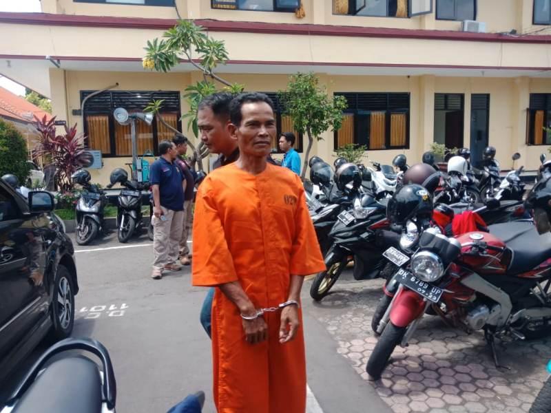 Bali Tribune/ Tersangka Cening saat digiring di Mapolres Buleleng